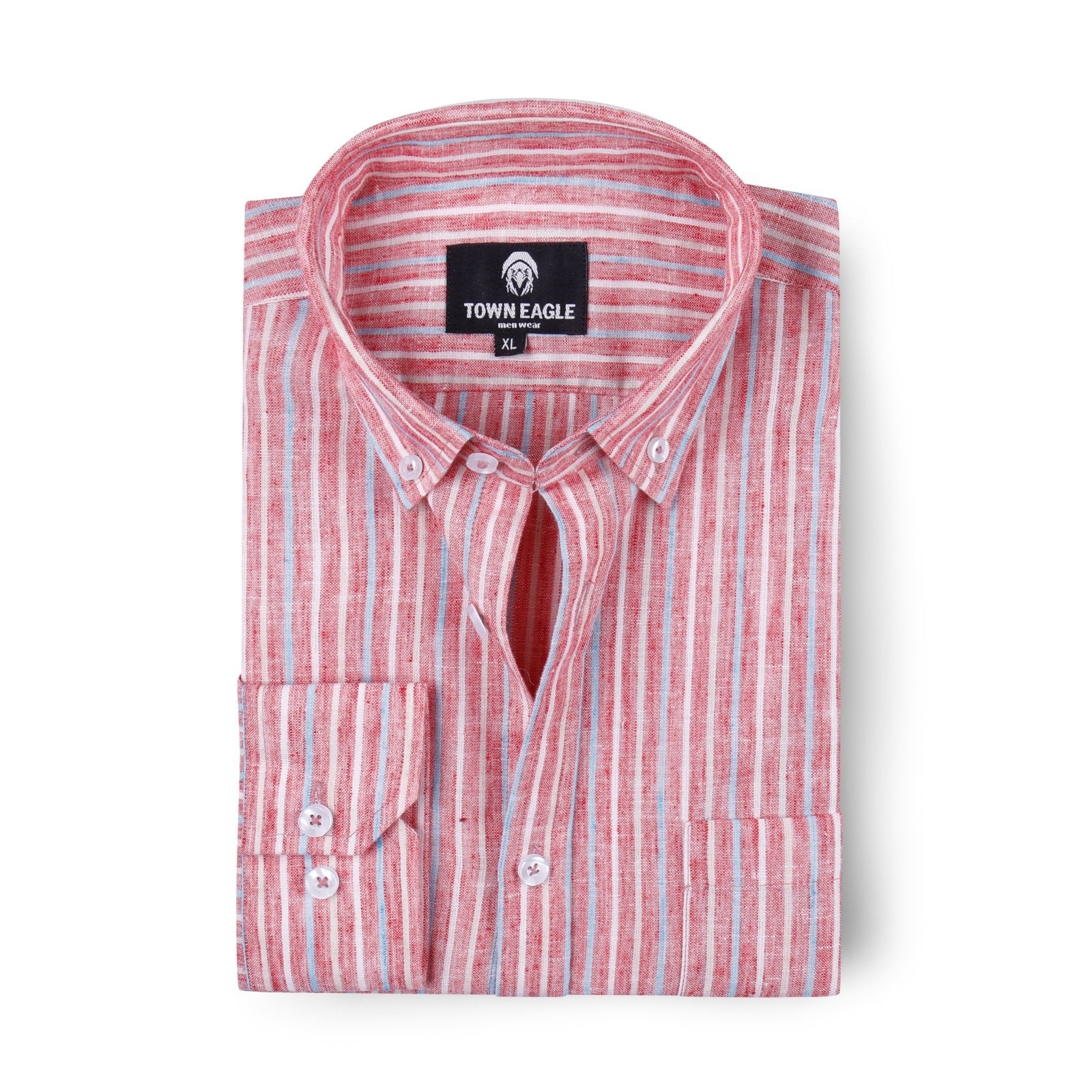 Home قميص كتان مخطط - لون طوبي - QA-230